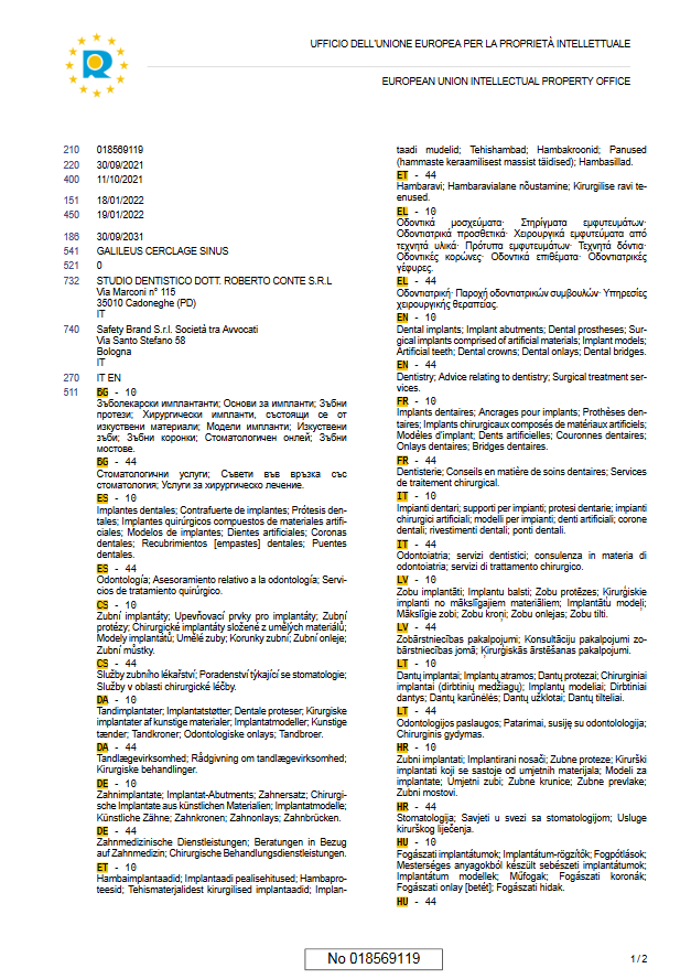 - Official registration in the European Union positions Galileus Cerclage Sinus® to revolutionize the field of implantology.