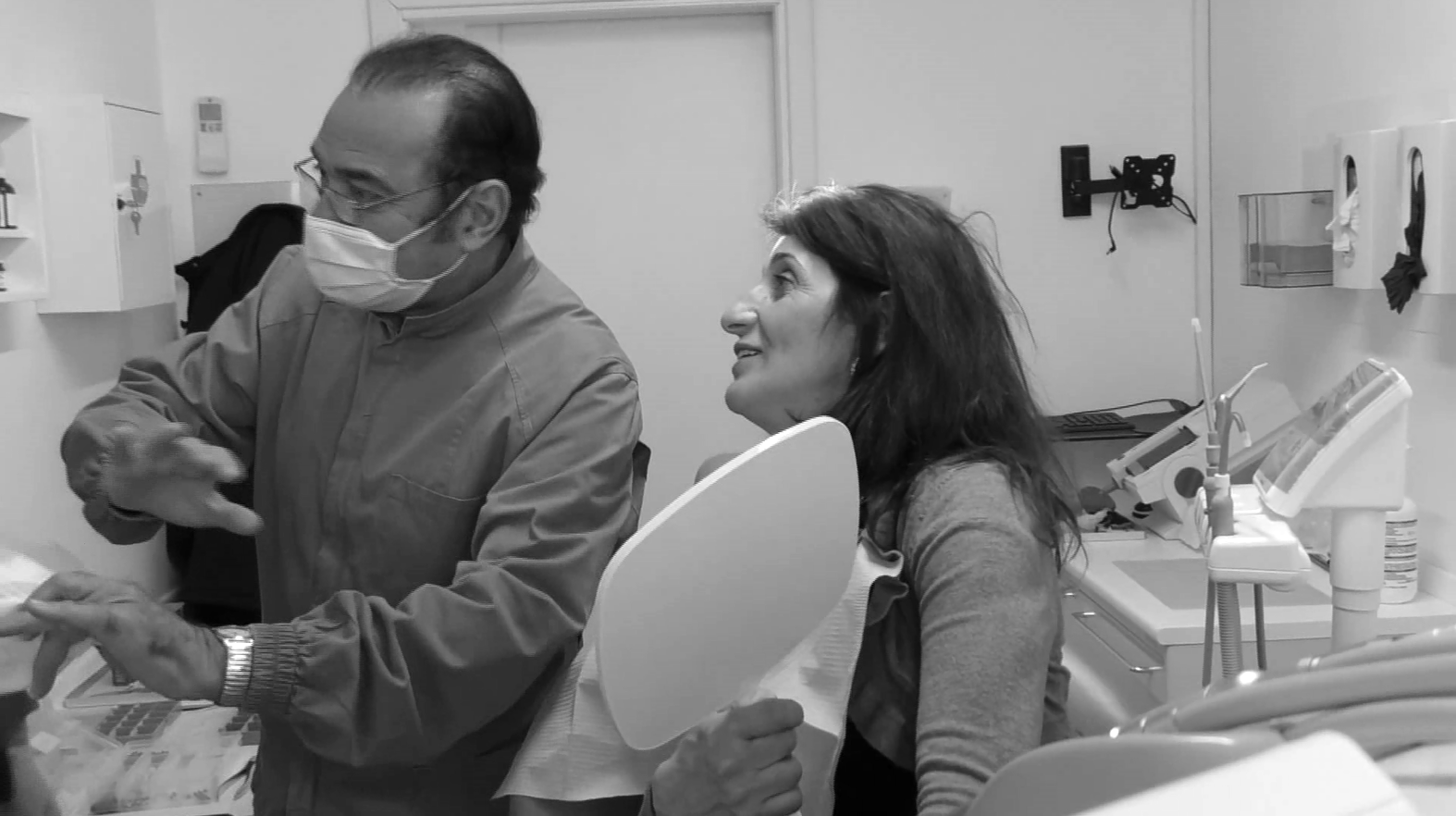- The emotionally moved patient observes the final result in the mirror, appreciating the extraordinary transformation of their smile.