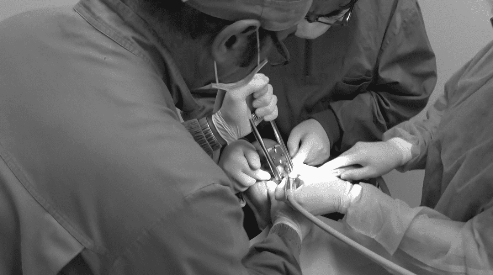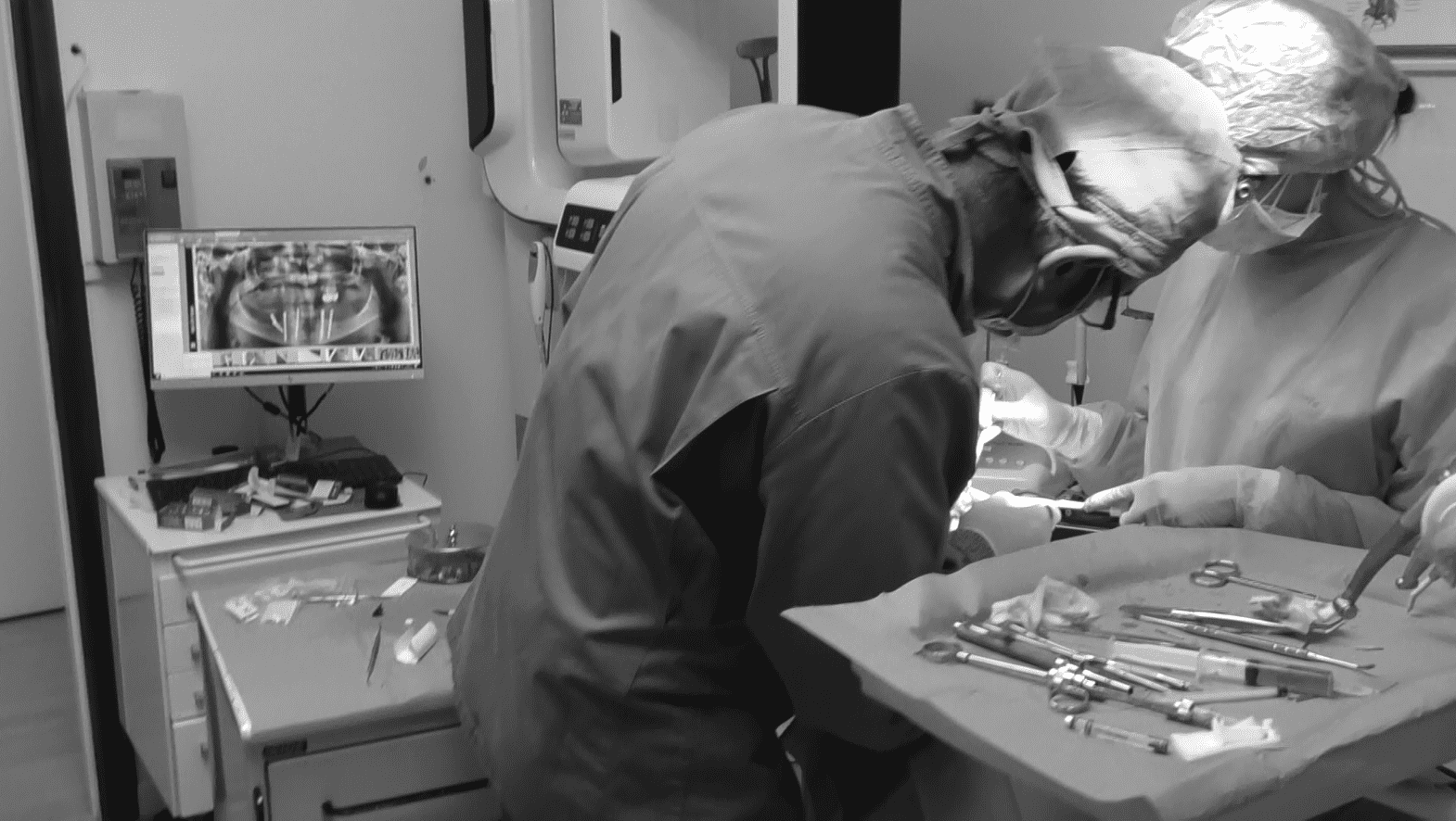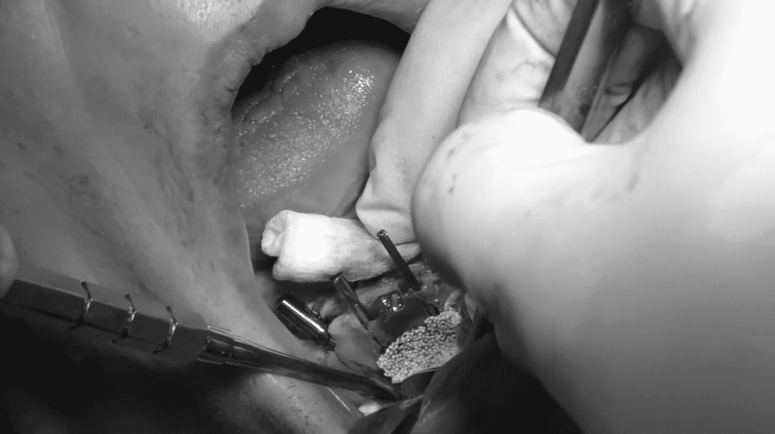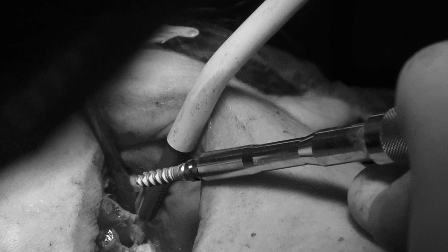 - With precise and measured movements, the pterygoid implants are manually inserted.